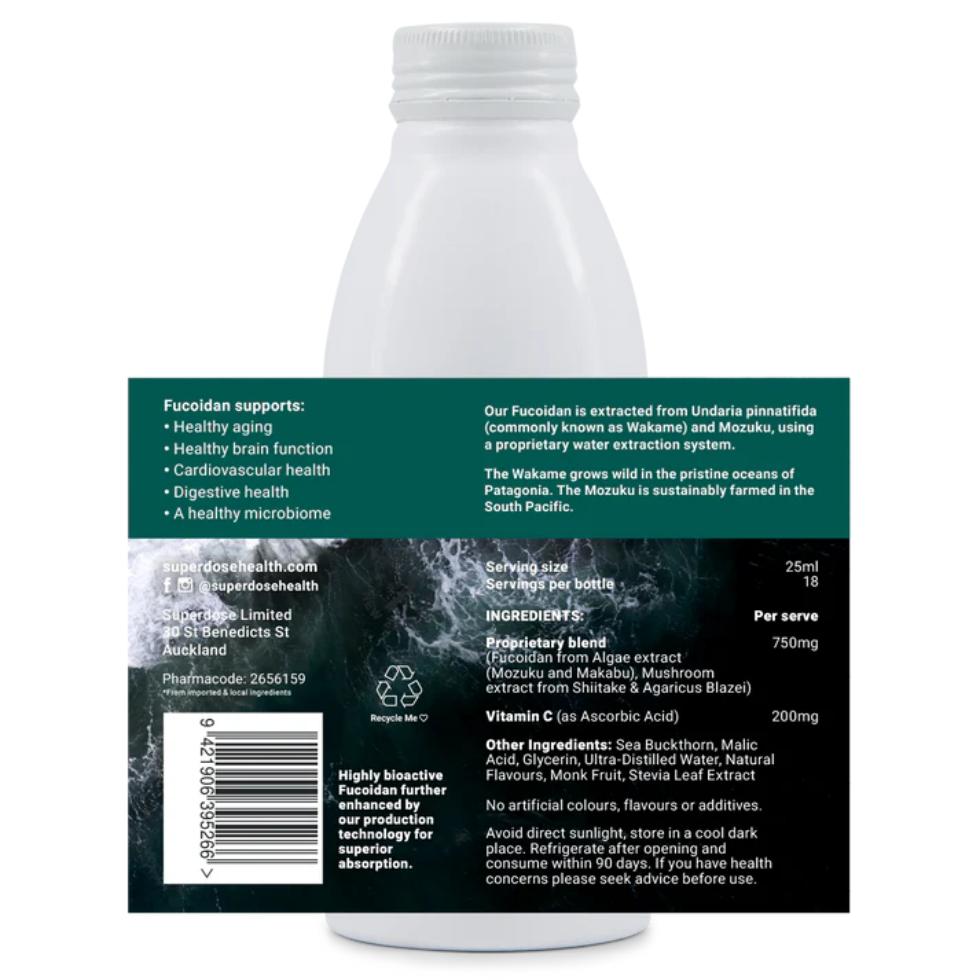 Our unique blend of high purity, water extracted Fucoidans are enhanced by the well-known benefits of Shiitake and Agaricus blazei mushroom extracts. Harvested from seaweed, Fucoidan naturally protects algae from UV rays and ocean-borne threats. And once extracted, Fucoidan offers a range of impressive health benefits.