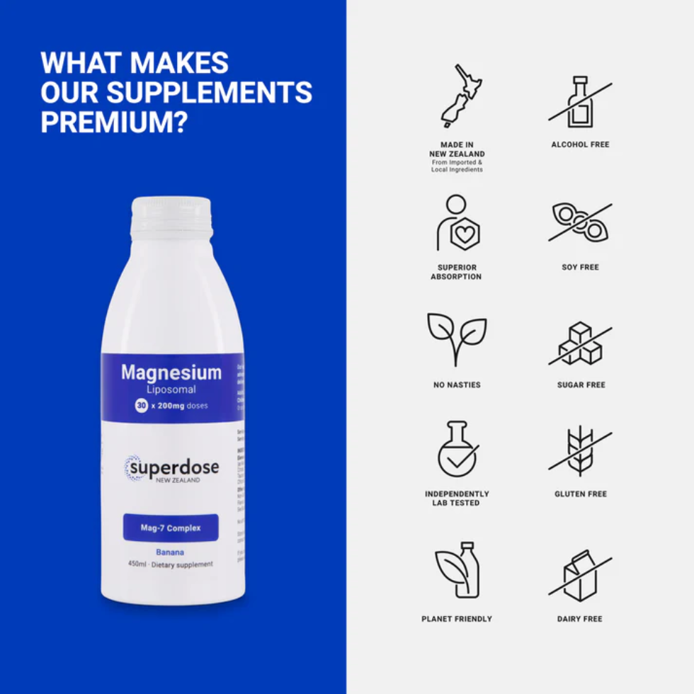 Looking to support energy and sleep? Our liposomal Mag-7 complex combines 7 smart forms of elemental magnesium, delivered in liquid liposomes for rapid delivery and superior absorption. Carefully crafted to help your body switch gears, supporting you to relax, recharge and recover on every level. From supporting deep and restful sleep to recovery from exercise, it's designed to help you feel your best.