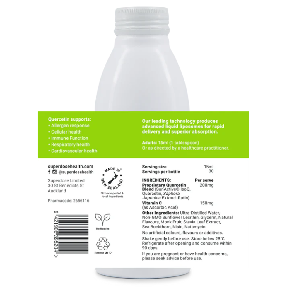Providing daily support for allergen season, our liposomal quercetin delivers a natural, potent alternative for supporting seasonal comfort. Clever quercetin also supports your body to deal with damaged malfunctioning cells, supporting a robust, youthful you. Introduce our highly bioavailable quercetin into your supplement routine to harness its potent antioxidant qualities, natural allergen and healthy aging support.